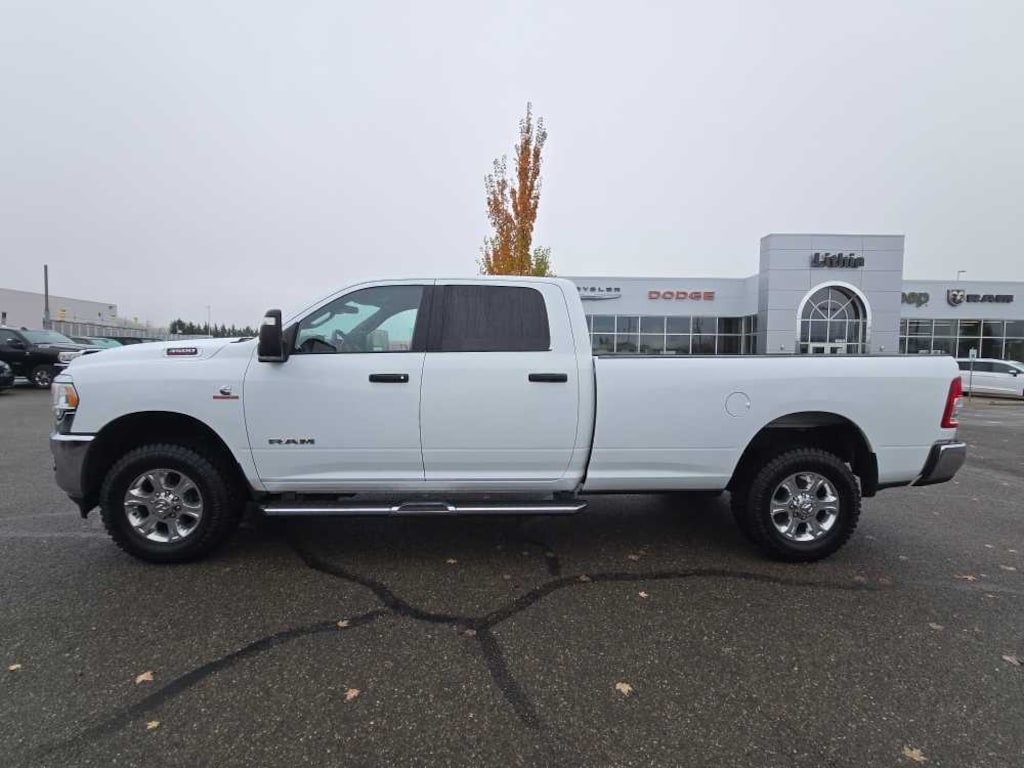 ENGINE: 6.7L I6 CUMMINS TURBO DIESEL Selective Catalytic Reduction (Urea), Dual 730 Amp Maintenance Free Batteries, Cummins Turbo Diesel Badge, Heavy Duty Engine Cooling, Current Generation Engine Controller, Diesel Exhaust Brake, Supplemental Heater, Capless Fuel Fill w/o Discriminator, GVWR: 12,300 lbs, RADIO: UCONNECT 5 W/8.4 DISPLAY Google Android Auto®, SiriusXM Radio Service, Selectable Tire Fill Alert, SiriusXM Satellite Radio, Integrated Center Stack Radio, For More Info, Call 800-643-2112, Connectivity - US/Canada, 4G LTE Wi-Fi Hot Spot, All Radio Equipped Vehicles, All R1 Low Radios, 8.4 Touchscreen Display, Apple CarPlay®, CHROME FLAT CAB-LENGTH SIDE STEPS, LEVEL 1 EQUIPMENT GROUP Leather Wrapped Steering Wheel, Rear Dome w/On/Off Switch Lamp, Front Fog Lamps, Glove Box Lamp, Auto Power-Folding Mirrors, Footwell Courtesy Lamp, Mirror Running Lights, Radio: Uconnect 5 w/8.4 Display, Foam Bottle Insert (Door Trim Panel), Wheels: 18 x 8.0 Polished Aluminum, Big Horn IP Badge, Forward & Reverse Utility Lights, Locking Lower Glove Box, Power Heated Fold Telescopic Mirrors, Steering Wheel Mounted Audio Controls, Dual Glove Boxes, 2nd Row In Floor Storage Bins, Power Telescoping Mirrors, TRANSMISSION: 6-SPEED AUTOMATIC 68RFE Urethane Shift Control, DIESEL GRAY/BLACK, PREMIUM CLOTH 40/20/40 BENCH SEAT Rear 60/40 Folding Seat, Front Center Seat Cushion Storage, Power Adjust 8-Way Driver Seat, Front Seat Back Map Pockets, Power 2-Way Driver Lumbar Adjust. Ram Big Horn with Bright White Clearcoat exterior and Diesel Gray/Black interior features a Straight 6 Cylinder Engine with 410 HP at 5600 RPM*.