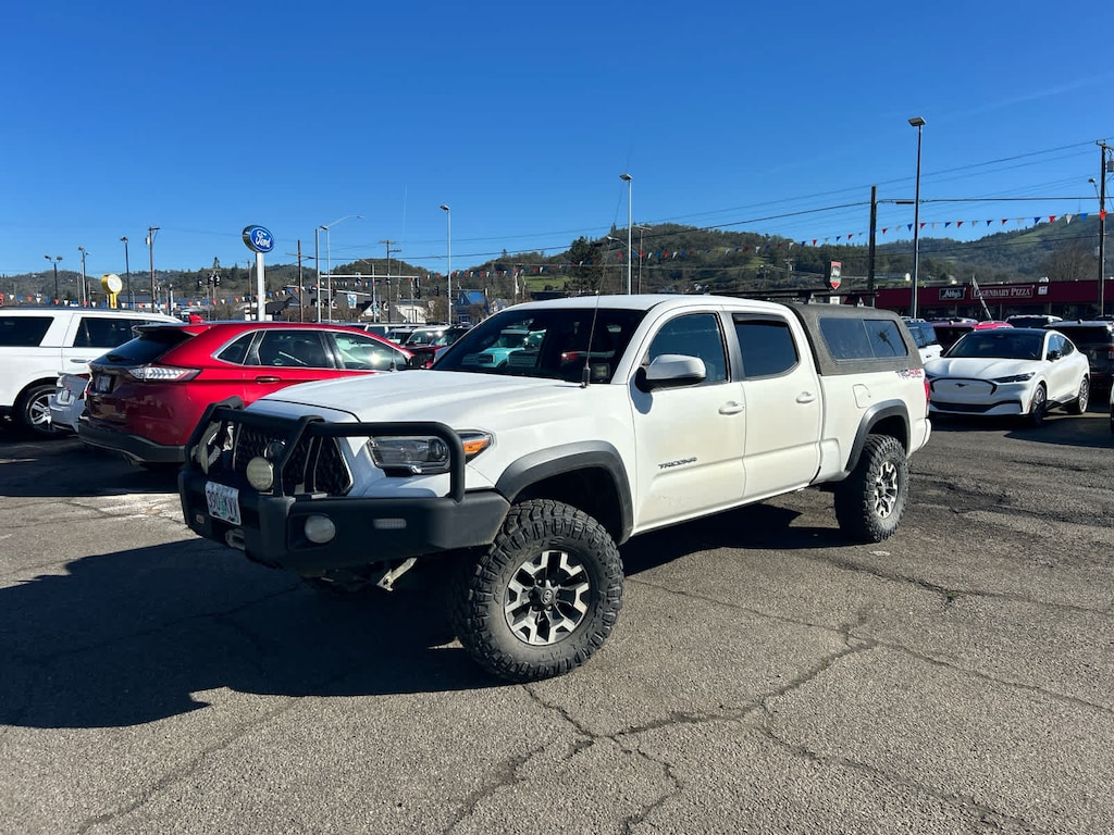 TECHNOLOGY PACKAGE Color Keyed Rear Bumper, Rear Parking Assist Sonar, Blind Spot Monitor w/Rear Cross Traffic Alert, ALL WEATHER FLOOR LINER & DOOR SILL PROTECTOR PKG Door Sill Protectors, TRD OFF ROAD PACKAGE Off Road grade package, Entune App Suite, Destination Search, iHeartRadio, MovieTickets.com, OpenTable, Pandora, Yelp, Facebook Places and Slacker Radio. 2018 Toyota Tacoma with Super White exterior and Graphite w/Gun Metal interior features a V6 Cylinder Engine with 278 HP at 6000 RPM*. Non-Smoker vehicle
