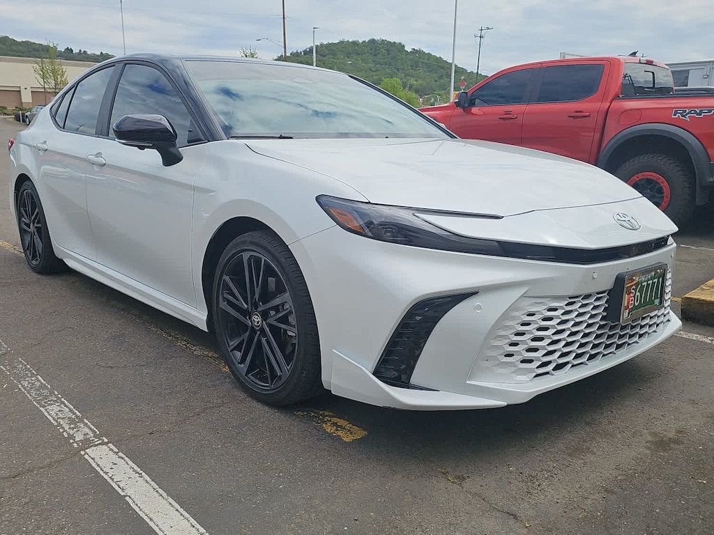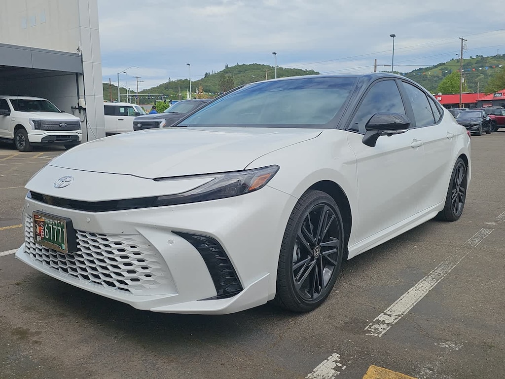 PREMIUM PLUS PACKAGE Panoramic Glass Roof, Removes overhead sunglasses storage, front power tilt/slide moonroof, Ventilated Front Seats, Panoramic View Monitor, 360-degree overhead view in low-speed drive and reverse and curb view, Traffic Jam Assist, Front Cross-Traffic Alert, Lane Change Assist, Front & Rear Parking Assist w/Automatic Braking, Digital Key Compatibility, Rain-Sensing Windshield Wipers, Drivers Seat & Outer-Mirror Memory, 9-Speaker JBL Premium Audio System, subwoofer and amplifier, Driver Monitor Camera, Rear Cross-Traffic Braking, 10 Color Head-Up Display, speedometer, shift position, compass, TSS 3.0 indicators, audio, phone and hybrid system indicator, ALL WEATHER FLOOR PROTECTION (TMS). 2026 Toyota Camry with Wind Chill Pearl w/Midnight Black Metallic Roof exterior and Black interior features a 4 Cylinder Engine with 232 HP at 6000 RPM*. Non-Smoker vehicle